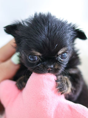 At just 1 month old, Roma is incredibly tiny and delicate, fitting perfectly in your hands. Her little features, short muzzle, and gentle expression reflect her sweet and calm nature. She’s a precious baby girl, full of tenderness and charm, and already showing the elegance and softness that make long hair Chihuahuas so special.